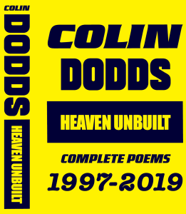 Heaven Unbuilt encompasses the entirety of Colin Dodds’ career as a poet, which spanned more than twenty years, beginning in the late 1990s. It includes selections from early books The Last Man on the Moon and The Blue Blueprint, the entire Spill-O cycle, decades of poems from bars, selected lyrics from the band Adultogram and the 2018 collection Spokes of an Uneven Wheel.